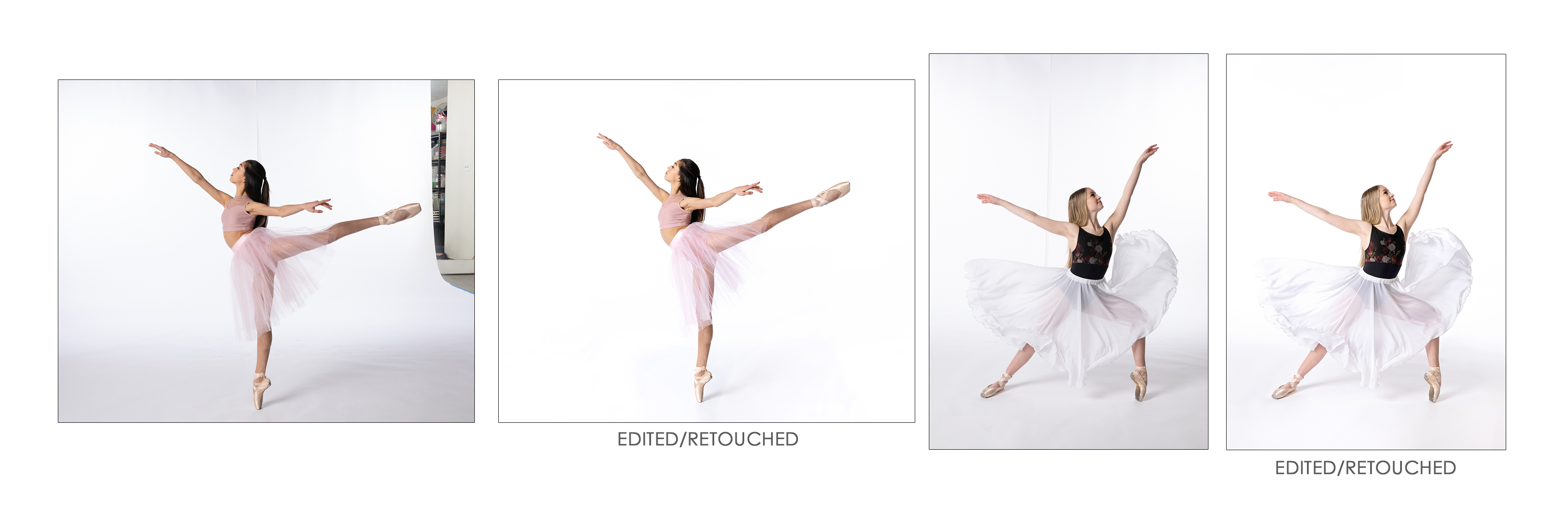 Images in this gallery have not been retouched. Prints, files, and products are retouched after ordering. This includes general retouching like colour & lighting, bruise and bad acne removal, toe point or knee enhancement when possible. Retouch requests can be made at checkout but may come at additional cost depending on complexity.